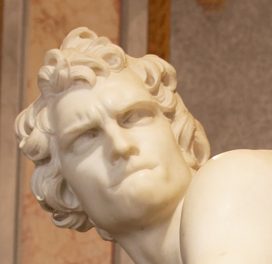 Bernini does not choose to represent the cut head of Medusa held by Perseus as is the case in the history of art since ancient times, through Cellini in the Renaissance and until recently by the French sculptor Christophe Charbonnel. Bernini is regularly influenced in his work by the ancient sculpture and by Caravaggio but he moves away from them. He does not seek to rediscover the ancient tradition of perfect beauty, as the Medusa Rondanini. He does not seem more to follow the tradition of terrifing face, distorted by the fear as Caravaggio. He decides to show the exact moment when Medusa sees her hair transform itself. He tries to transcribe the suffering and anguish of the young woman at the moment when her destiny is swaying. In this, Bernini is typically a baroque artist. Indeed, the theme of metamorphosis is particulary appreciated at this time and Bernini likes to seize the fleeting but decisive moment of action. He looks for the culmination point of action and feelings. He had already done so to show Daphne at the time of his transformation and David preparing to fight Goliath.