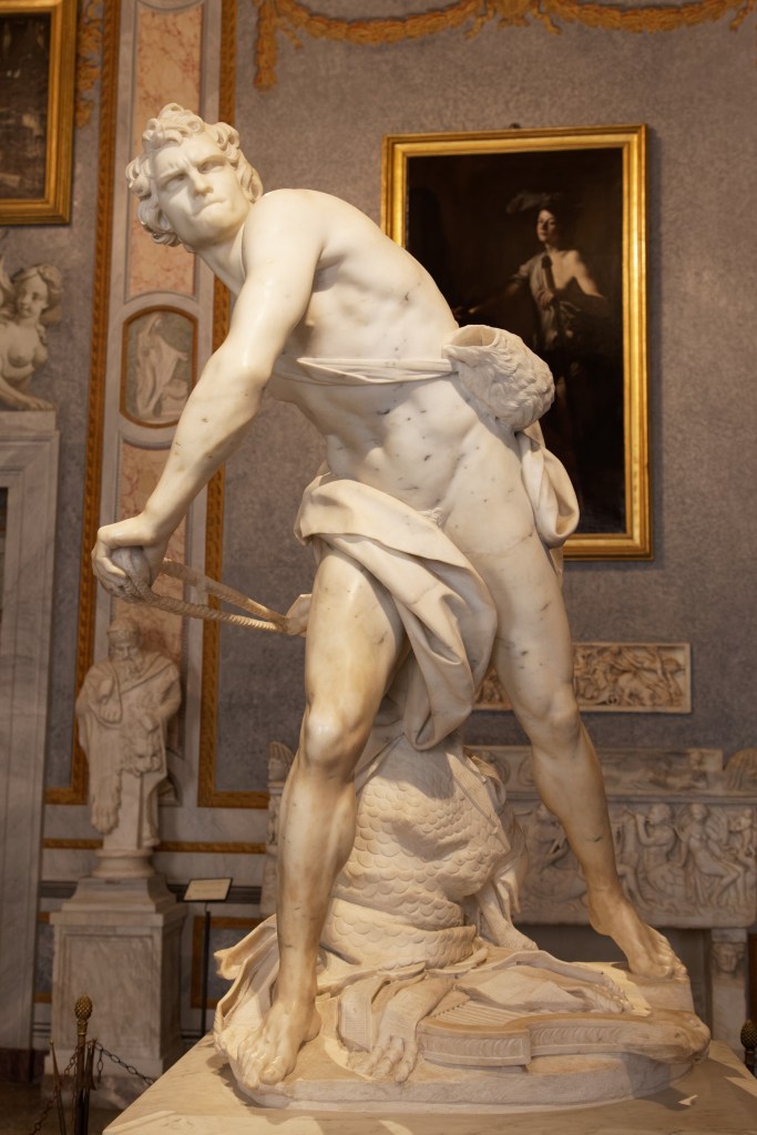 Born in Naples in 1598, Gianlorenzo Bernini was trained in the workshop of his father, Pietro Bernini. He was called to Rome in 1605 to work for the cardinal Scipion Borghese. The cardinal soon noticed the Young Bernini’s talent and gave him his first orders. In the early 1620s, he commissioned him a new series of works for his palace. These four groups of statues (Aeneas and Anchise, David, the abduction of Proserpine and Apollo and Daphne) allow him to obtain the Glory. He began to work for the pope Urbain VIII and became a sculptor, painter and architect very well known.