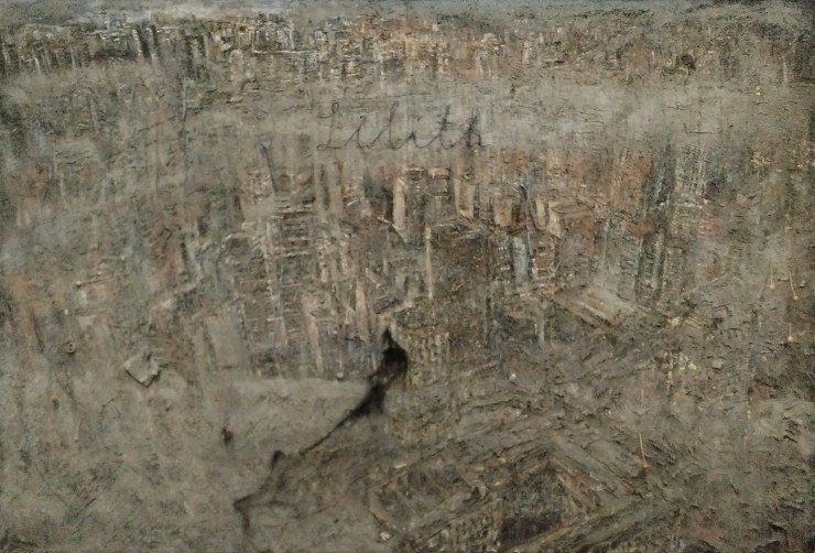 J’aime ce tableau pour cette forme noire qui contemple une grande ville moderne comme si elle contemplait une civilisation disparue.