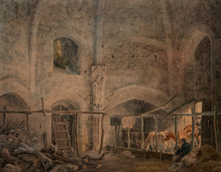 Very closely linked to landscape painting, the technique of watercolour finds in England a favourable ground for its development. Painters can experiment with new techniques and, at the same time, express their full sensitivity. Until the 1770s, watercolour was used in the traditional way, that is, to bring colour to a drawing (colour was then constrained by the line of the drawing), but artists discovered new ways of working by making colour more independent: colour acquired an independent figurative power (it exceeded the line of the drawing, or even there was no more line of drawing).