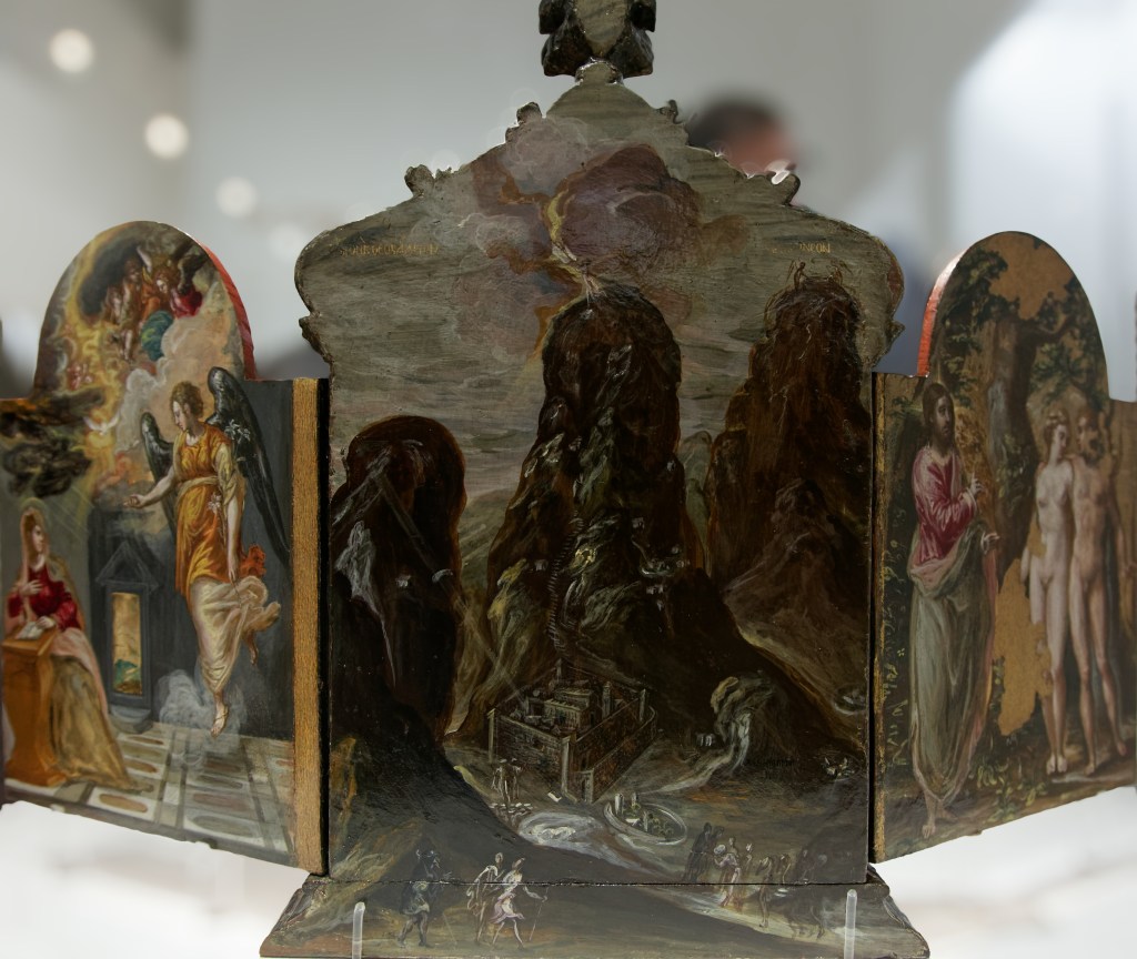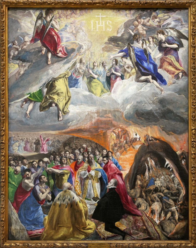 Le titre n’est peut-être pas tout à fait juste car, plutôt que le partage de la tunique de Jésus par des soldats jouant aux dés (que l’on ne voit d’ailleurs pas sur la toile), il s’agit plutôt du dépouillement de sa tunique par le bourreau avant le supplice. Mais ce n’est que mon avis. Sur ce grand tableau, l’accumulation des personnages enlève presque toute profondeur, les couleurs y sont violentes et les corps étirés en longueur. J’aime particulièrement la virtuosité avec laquelle Greco fait se refléter la tunique rouge du Christ sur l’armure de l’homme se tenant à ses côtés.