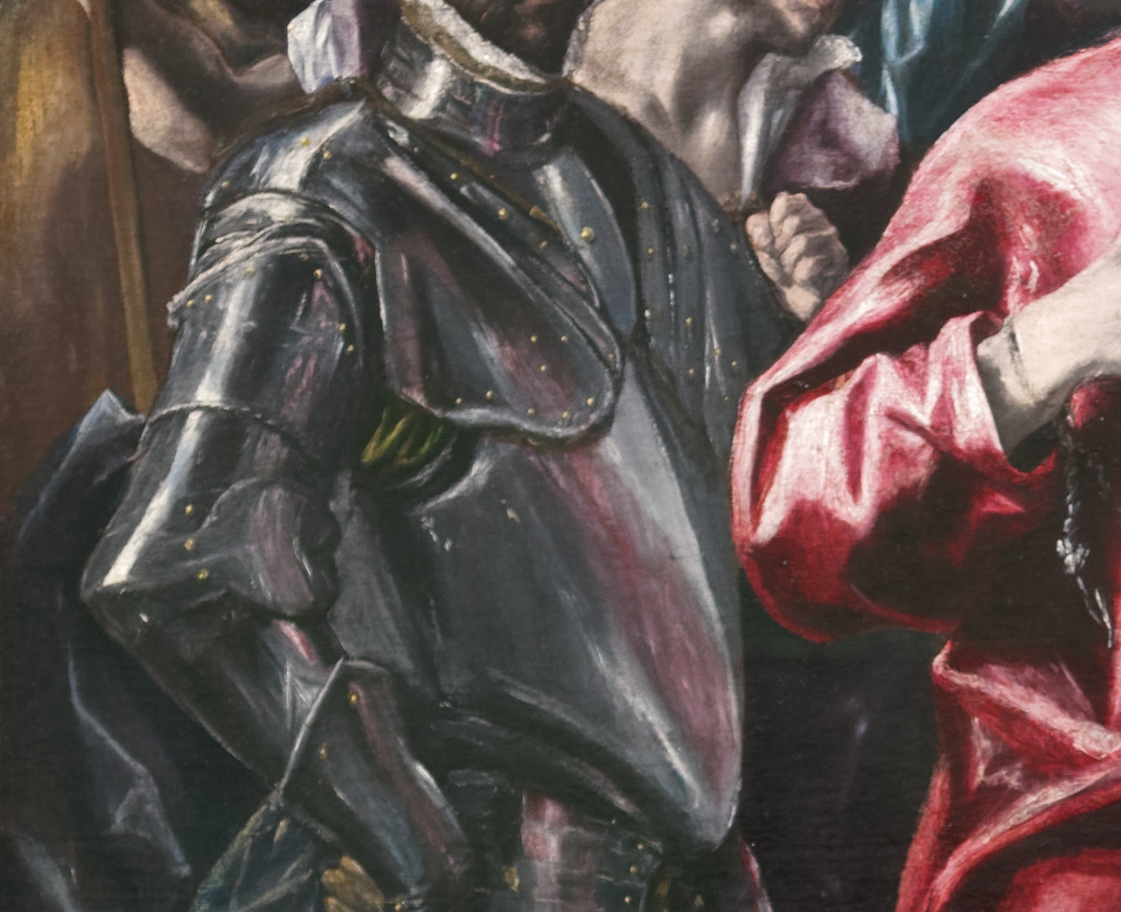 Greco transpose une scène censée se passer au IVe siècle, à son époque. Le jeune cavalier est vêtu d’une armure du XVIe siècle. Il faut remarquer la merveilleuse vue de Tolède en arrière-plan. J’aime chez Greco cette impression d’imprécision, voire d’esquisse, lorsque l’on voit l’œuvre dans son ensemble qui contraste avec la précision de certains détails.