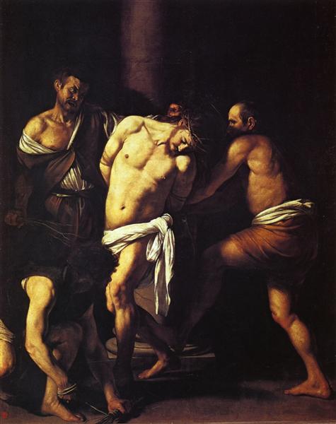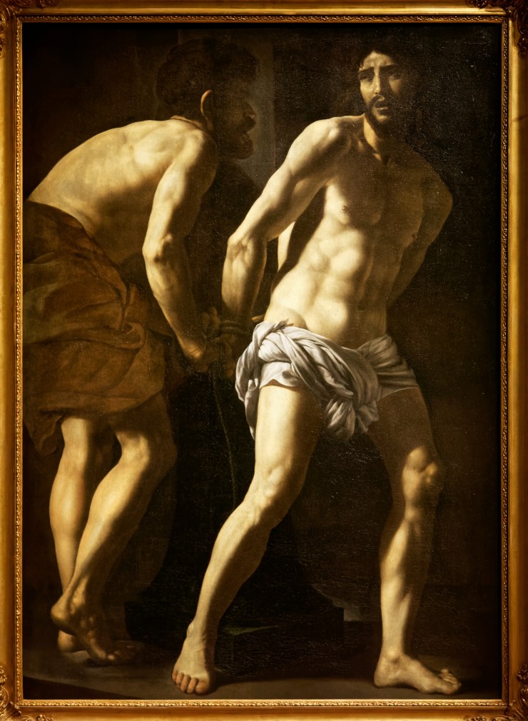 The style is very clearly influenced by Caravaggio: naturalism of the bodies, violent light, tight framing. The painting is inspired by Caravaggio’s Flagellation of Christ.