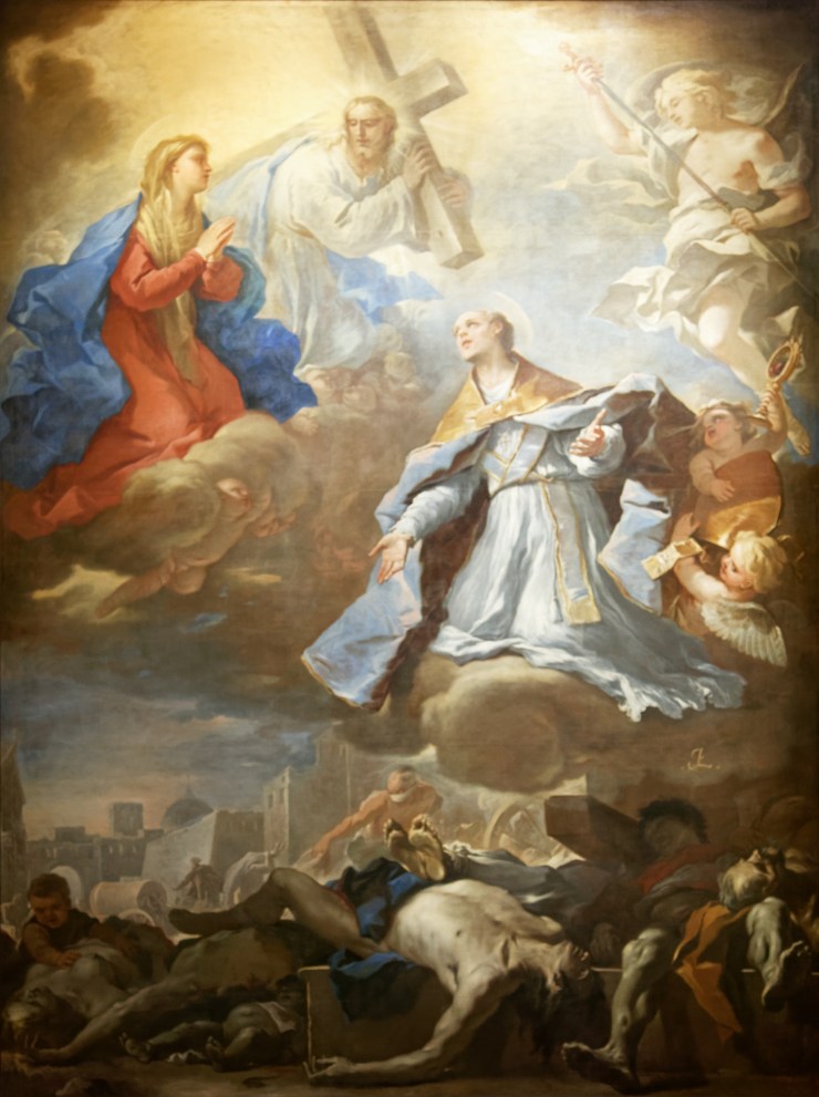 Luca Giordano returned definitively to Naples in 1702 and began a final cycle of six paintings for the Girolamini church. They are dedicated to Saint Philip of Neri and Saint Charles Borromeo, two emblematic figures of the Counter-Reformation.