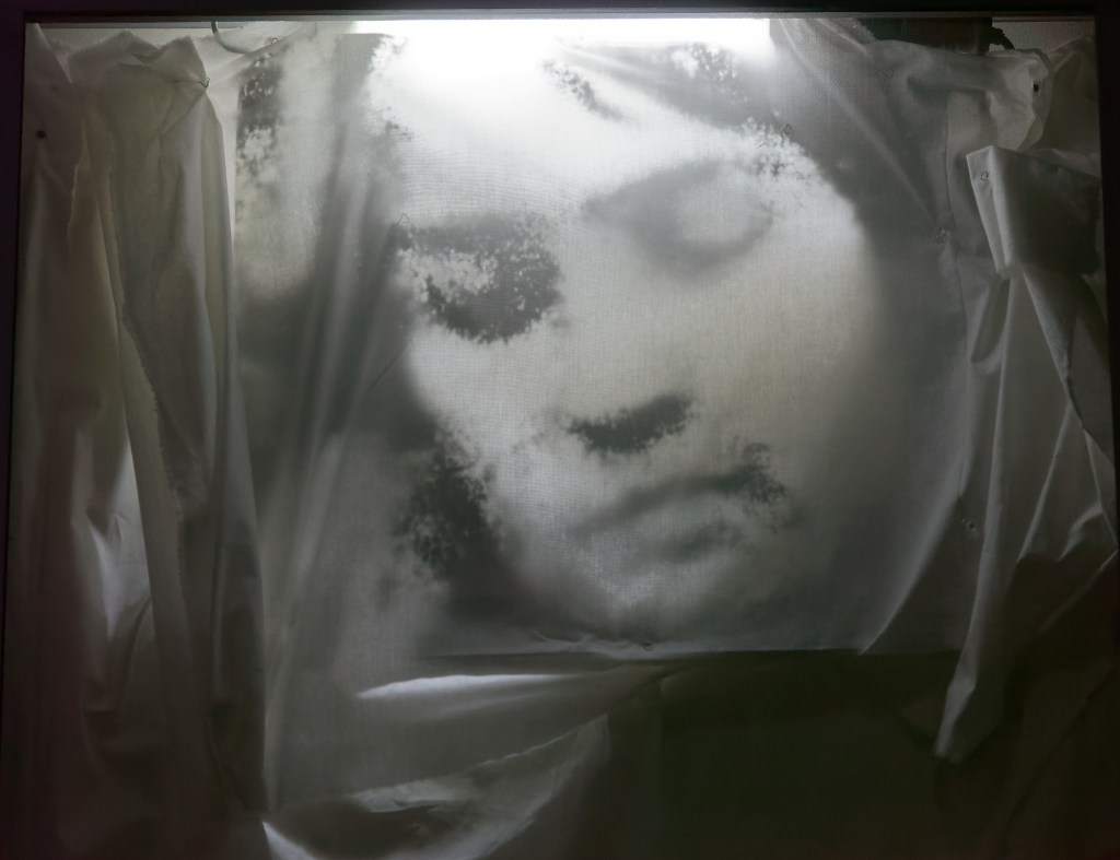 I like these works because the folds in the fabric make the images less sharp, like the blurring of memory