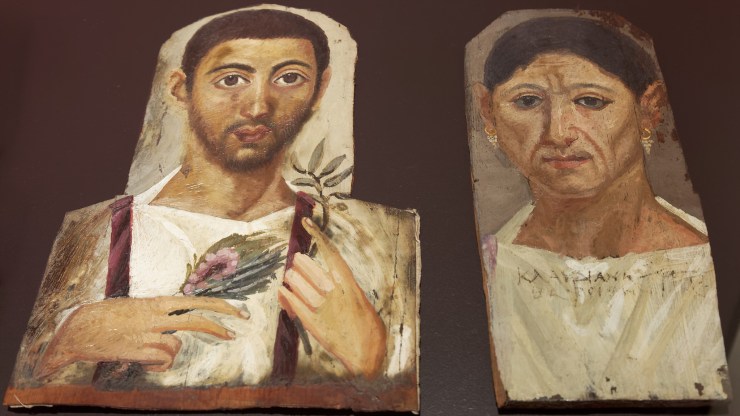 The museum has an exceptional series of eleven Egyptian funerary portraits from the Roman period. Known as « Fayum portraits », they come from the excavations of the ancient city of Antinoupolis. These portraits, painted with encaustic (which uses melted wax to dilute the colours) on fig or sycamore wood, are made from nature, during the lifetime of the person depicted. They were intended to cover the face of the dead, placed on the shroud or wrapped in the mummy’s strips. These painted tablets, very realistic, are the oldest evidence of the art of the painted portrait.