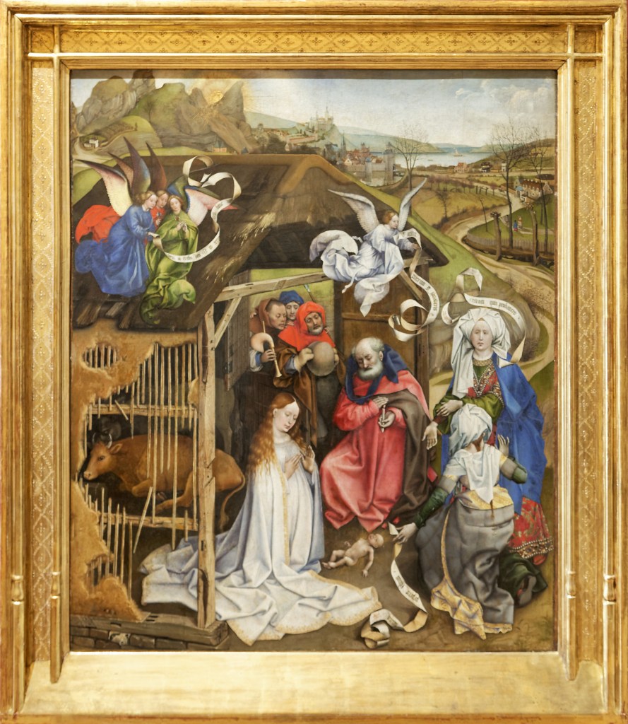 De manière générale, la chartreuse de Champmol est un véritable « musée » avant l’heure. S’y trouvaient des œuvres de Simone Martini, Van Eyck ou encore Van der Weyden, qui ont été dispersées au fil du temps. De ses œuvres majeures, il ne reste plus que L’Adoration des bergers peinte par le Maître de Flémalle vers 1430. Le peintre y associe deux thèmes religieux (la Nativité et l’Adoration des bergers) et, surtout, y fait preuve d’un style totalement nouveau, basé sur l’observation de la réalité. Les personnages sont traités de manière très réaliste et, grande nouveauté, ils s’intègrent dans un paysage naturaliste fourmillant de détails et présentant l’une des premières utilisations de la perspective atmosphérique (qui consiste à créer l’illusion de la profondeur par l’utilisation de couleurs qui s’estompent avec la distance).