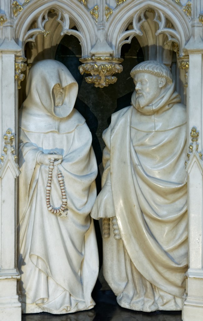 Se trouvaient également à la chartreuse, le Retable des saints et martyrs, sculpté par Jacques de Baerze comme le Retable de la Crucifixion, avec ses volets peints par Melchior Broederlam et qui a déjà fait l’objet d’un article ( https://l-art-en-tete.com/2019/10/09/melchior-broederlam-le-premier-des-primitifs/)