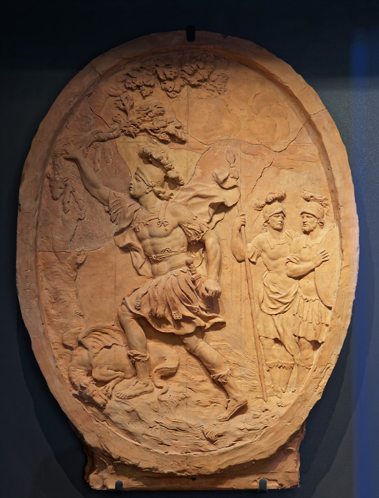 In Dijon, the sculptor Jean Dubois is very successful and produces, with his workshop, many sculptures in a baroque spirit. His work also leads him to be an architect and decorator. It was to decorate a series of chimneys in the Palais des Etats de Bourgogne that he made terracotta sketches. The iconographic programme is designed to highlight, through allegories, the personality of Louis XIV, as well as the great moments of his reign.