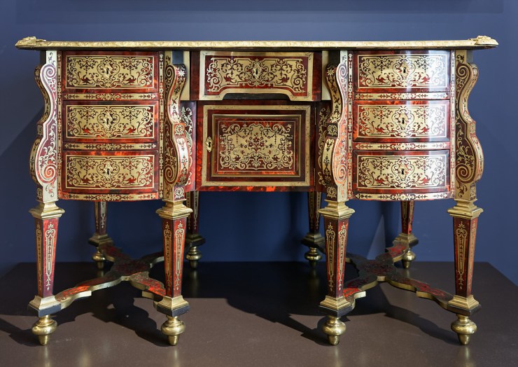 he museum also offers a fine collection of decorative arts which shows the know-how and excellence of 17th century craftsmen, in particular the Parisian cabinetmaker André-Charles Boulle, represented here by a Mazarin desk and a clock. Boulle created a new process that consists of cutting the same motif out of copper and tortoiseshell. He then obtains a first panel, the « part », in copper on a tortoiseshell background (this is the case of our desk) and a second panel, the « counterpart », in tortoiseshell on a copper background.