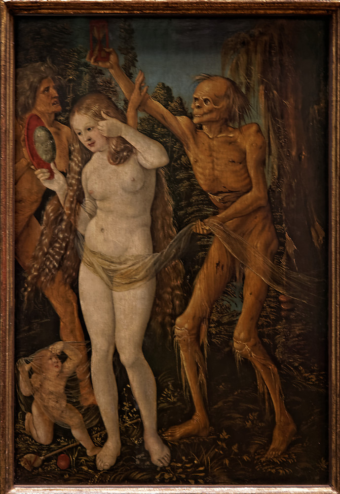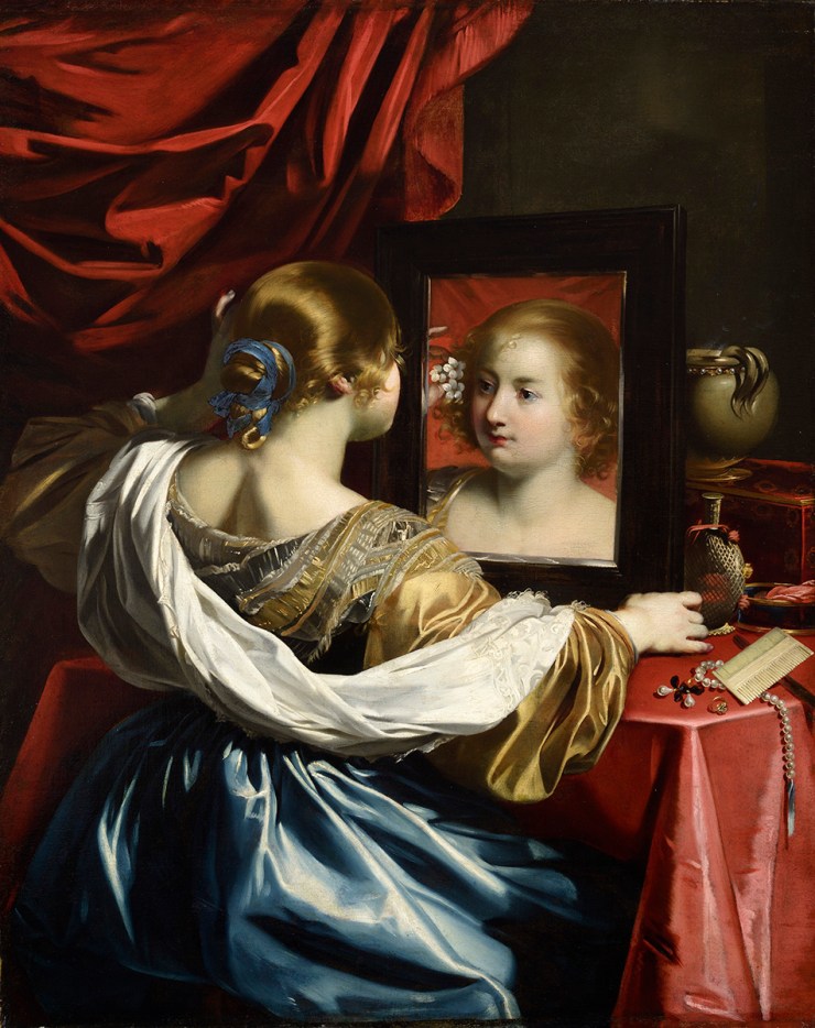 The beautiful young woman who sees death reflected in her mirror symbolises Vanity, the fragility of beauty and the passing of time.