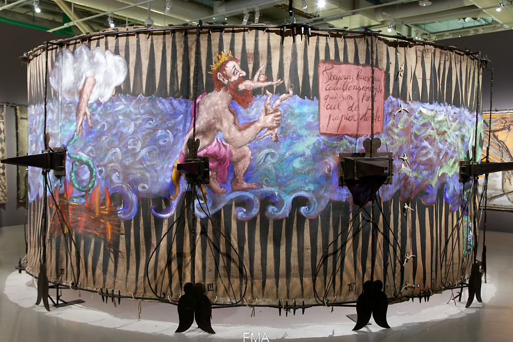 Il s’intéresse également aux différents niveaux de lecture de la Bible et en tire d’immenses toiles. c’est la série des Indiennes.